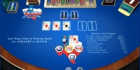 В покере Texas Hold ‘Em Bonus можно делать дополнительную бонусную ставку на отдельное поле. Ее размер зависит от лимитов стола. Например, если максимум основной ставки равен ста, то на бонус можно поставить до двадцати пяти кредитов.