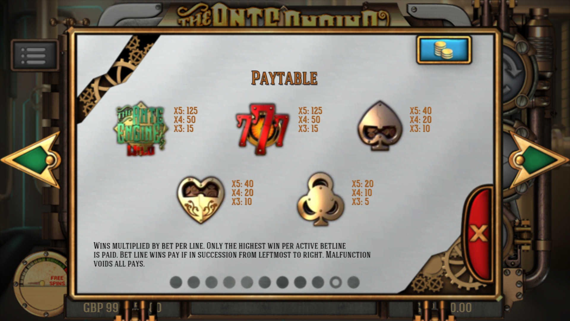 Игровой автомат The Ante Engine, который выпустили специалисты из AppleJack, выдержан в стиле довольно популярного направления в искусстве, который принято называть стим-панком. Он выполнен в виде диковинного механического устройства, что само по себе интересно. Однако главным достоинством новинки является подборка увлекательных функций, включая уникальные разработки создателей слота.