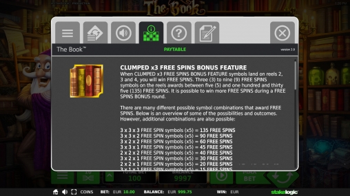 The Book имеет десять постоянно задействованных линий для формирования комбинаций. В нем пять барабанов и пятнадцать символов на экране.