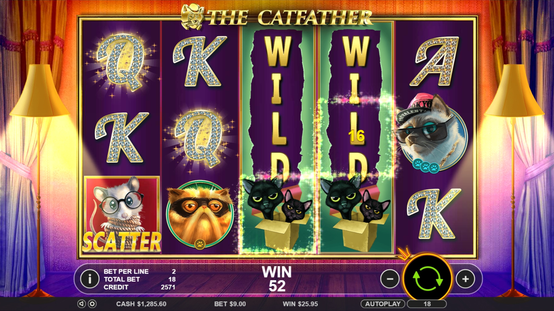 В слоте также есть два особых символа: Wild (черные котята в коробке) и Scatter (похищенная и связанная мышь). Об этих элементах поговорим детальнее: