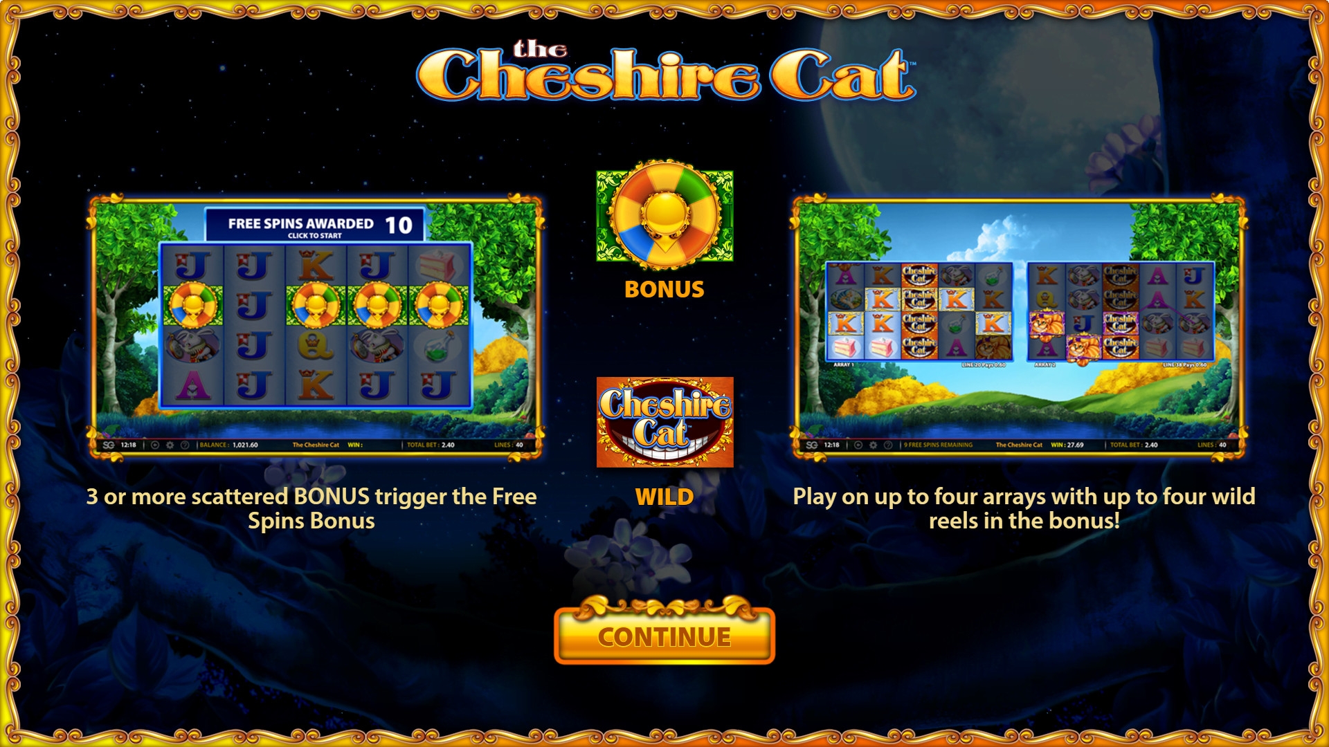 Видео-слот The Cheshire Cat бесплатно и на деньги предлагается в онлайн-казино 777 и других заведениях с софтом WMS. Испытать его в демо-версии можно на Casinoz.