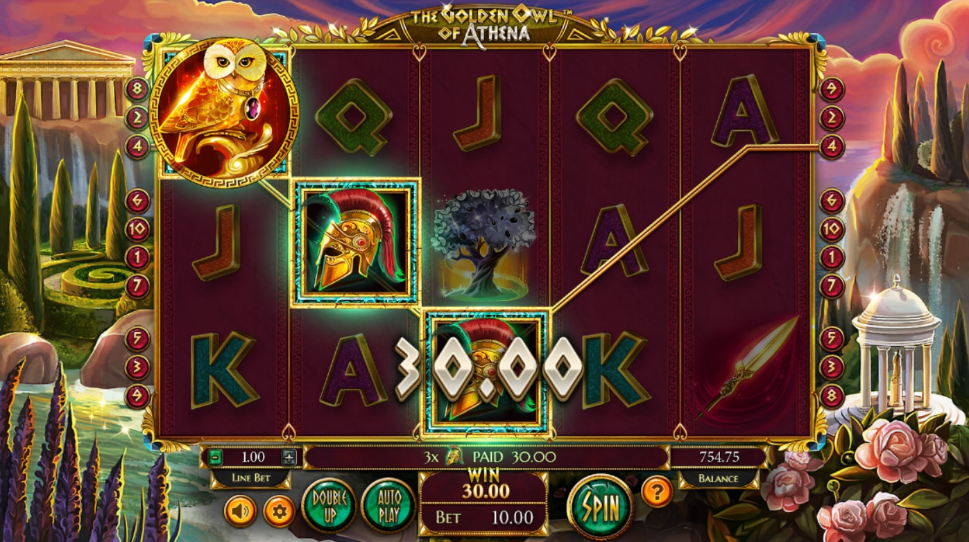 По традиции, древние греки изображали Афину с совой, которая символизировала мудрость прославленной богини войны. В игровом автомате The Golden Owl of Athena студии Betsoft величественная птица представлена в виде золотой статуэтки. Ее появление на экране сулит вам заманчивые возможности, о которых вы узнаете из обзора Casinoz.