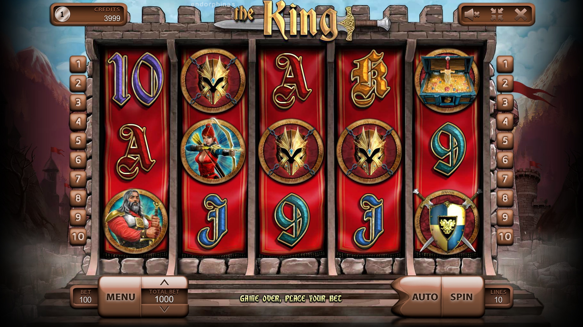Вы сможете испытать The King бесплатно в демо-версии прямо на Casinoz. Играть на деньги можно в разных казино на софте Endorphina. Их обзоры с отзывами пользователей вы найдете на нашем сайте.