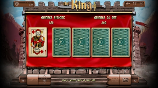 The King имеет пять барабанов, пятнадцать символов на главном экране и десять активных линий, количество которых игрок может выбирать по своему усмотрению.