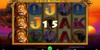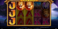 - Wild (лев) идет стеками на всех барабанах и часто заполняет колонки. Он сам формирует выигрышные цепочки и заменяет стандартные картинки.