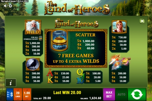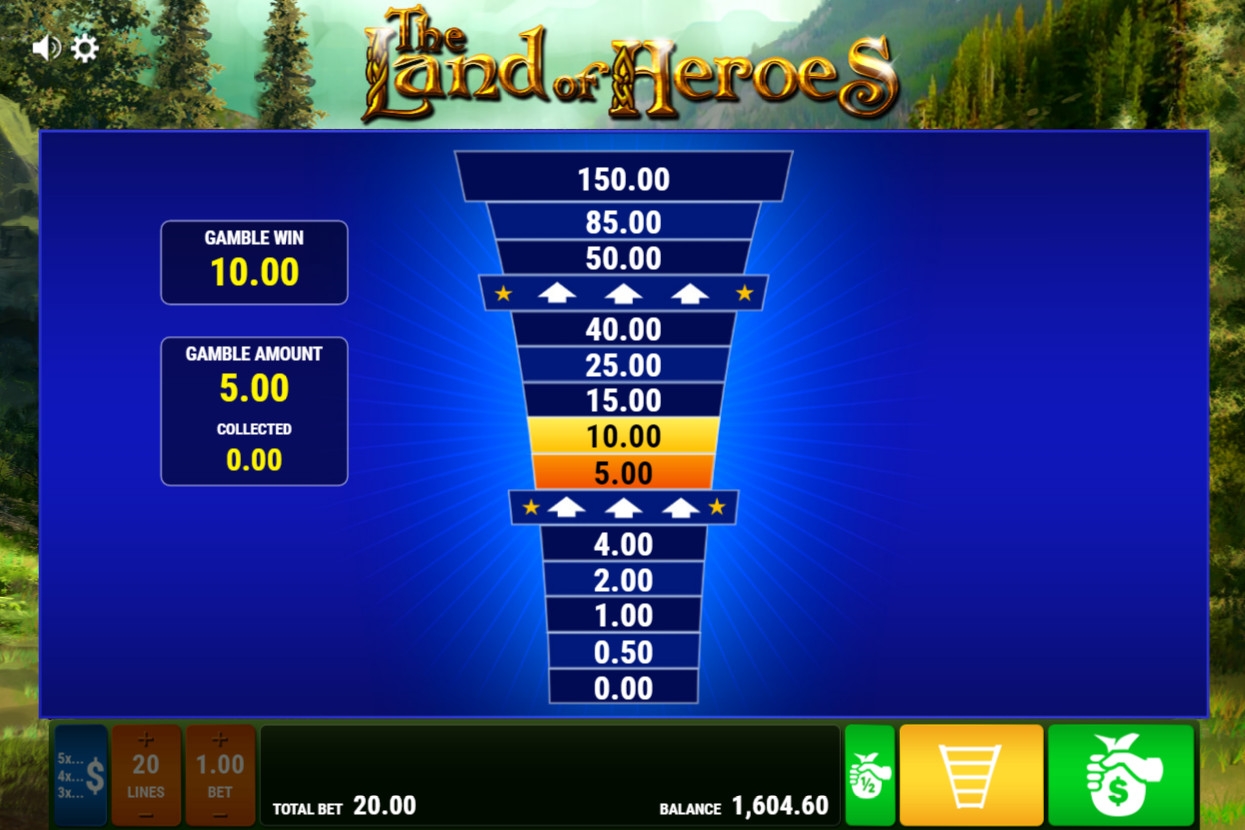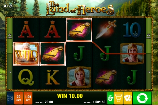 В The Land of Heroes есть простые картинки, специальные элементы с расширенными возможностями, два раунда игры по равным шансам и фри-спины с призовыми опциями.