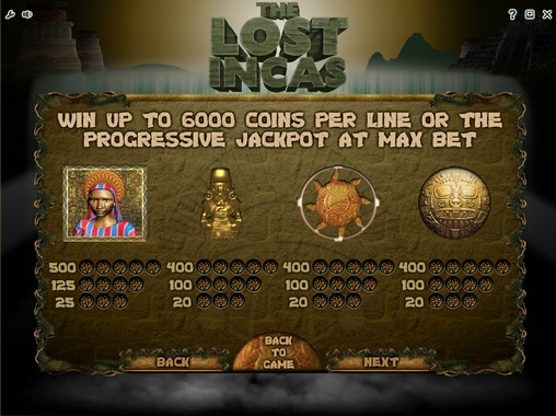 На экране видео-слота The Lost Incas можно увидеть древних инков, предметы их быта, различные архитектурные строения, монеты и прочие подобные картинки.