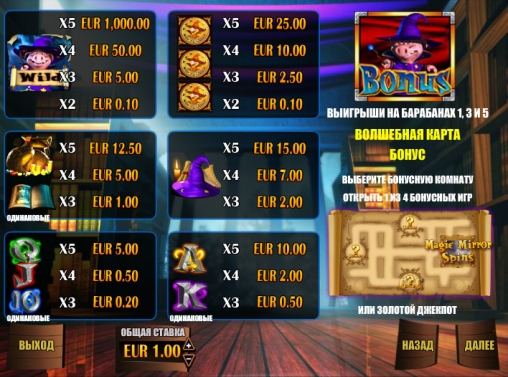 - Magic Mirror Free Spins - Вы получите право на бесплатные спины. Игры в них будет идти по последней ставке, которую за вас будет делать казино. В этом раунде есть также дополнительные возможности. Он может быть продлен.