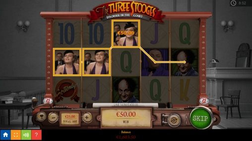 В The Three Stooges: Disorder in the Court есть разные виды символов, включая несколько специальных элементов, фри-спины, тематические призовые раунды и другие бонусы.