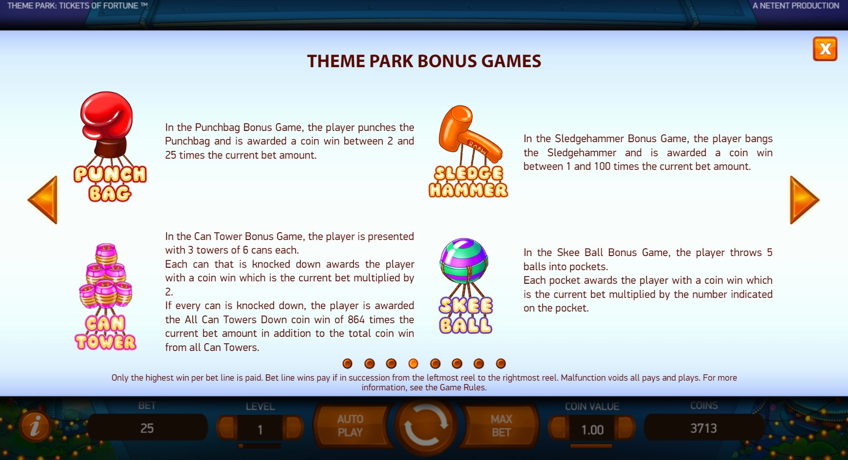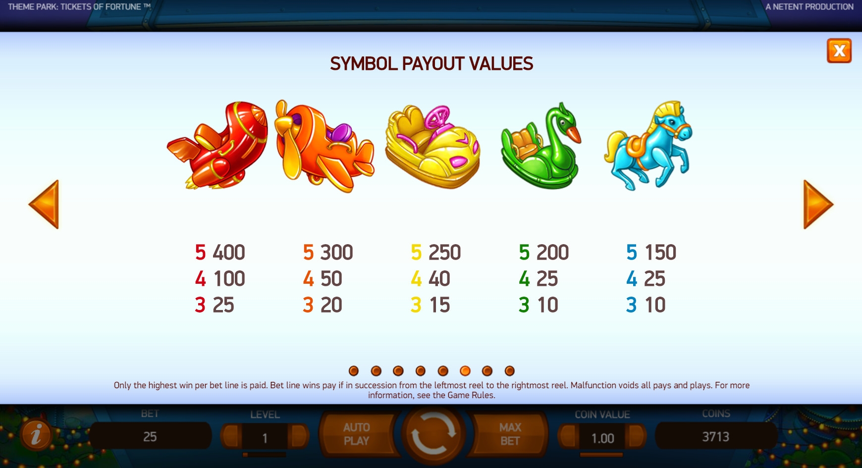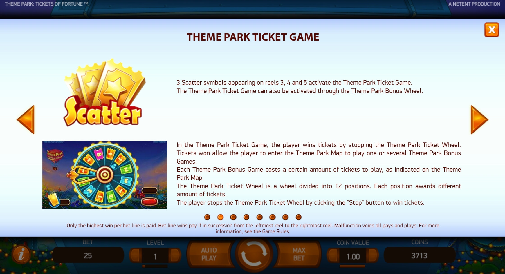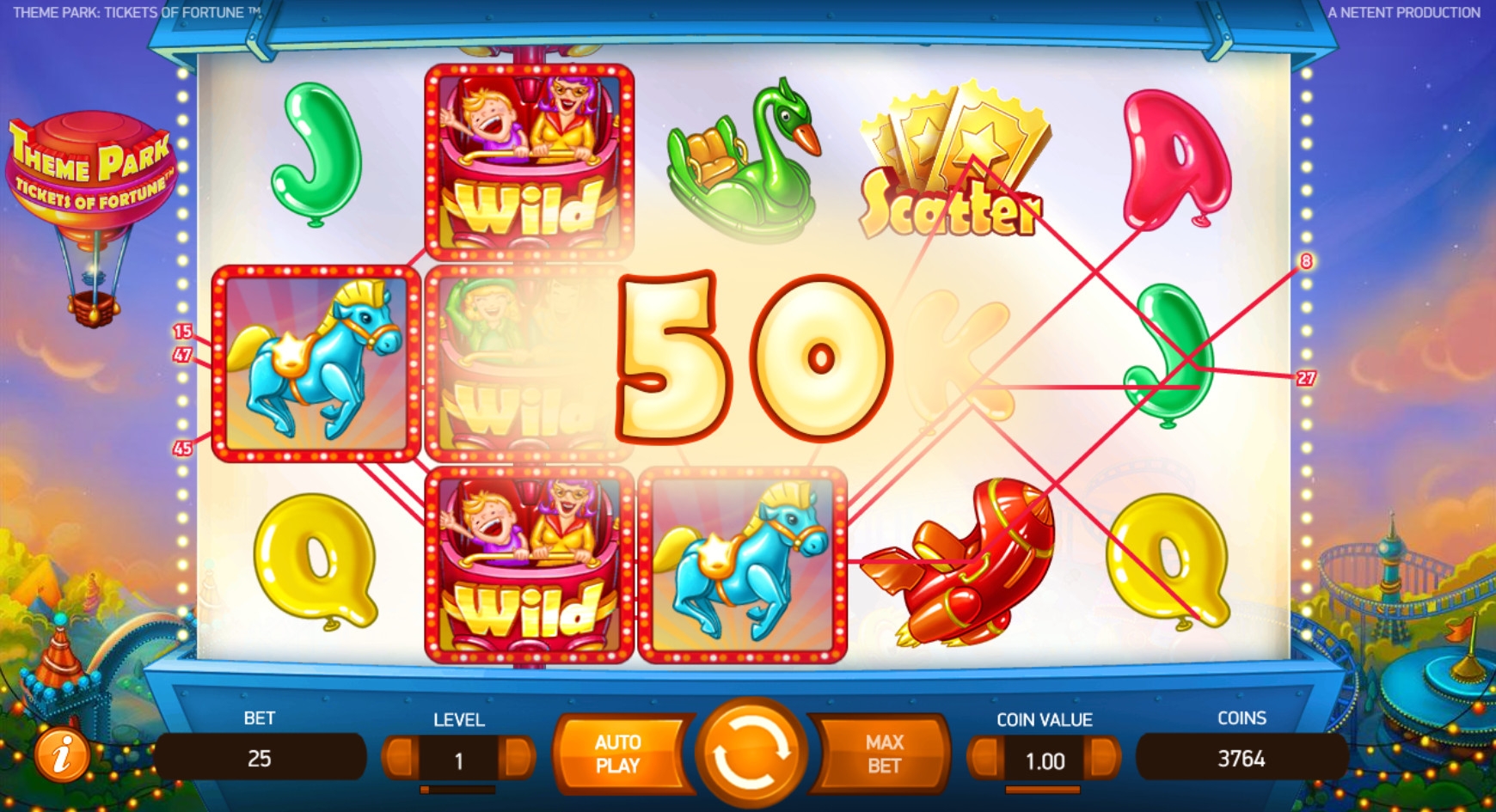 Разработчики из NetEnt порадовали нас замечательной новинкой с огромным количеством интереснейших возможностей. Речь идет об игровом аппарате Theme Park: Tickets of Fortune, посвященном тематическому парку с аттракционами для детей и взрослых. В слоте реализованы всевозможные призовые функции, которые подробно рассматриваются далее в статье от Casinoz. Рекомендуем изучить обзор, прежде чем переходить к тестированию игры.