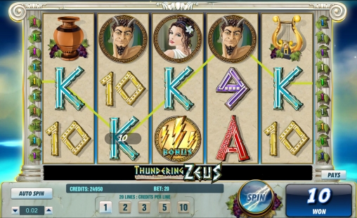 Интересными особенностями видео-слота Thundering Zeus являются возможности специальных символов и выгодные бесплатные спины. Оформление автомата достаточно приятное, интерфейс удобный, коэффициенты комбинаций крупные. В общем, весьма качественная игра, которую стоит протестировать лично.