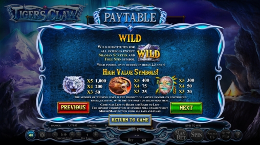 Компания Betsoft сделала главным героем видео-слота Tiger’s Claw могущественного шамана, живущего в юрте над горным ущельем. Забравшись подальше от людей, он сближается с природой, медитируя под огнями северного сияния. Модель представляет интерес не только колоритным персонажем и зрелищным дизайном. Вас ждут многочисленные выплаты, особые символы нескольких типов и уникальные фри-спины.