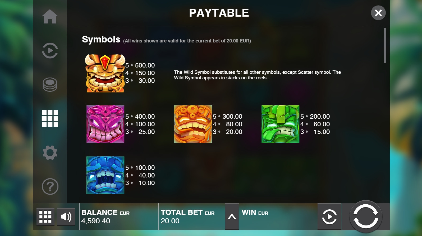 На барабанах видео-слота разработчики изобразили драгоценные камни и статуи полинезийских божеств. Символы одного типа выпадают в колонках вертикальными стеками.