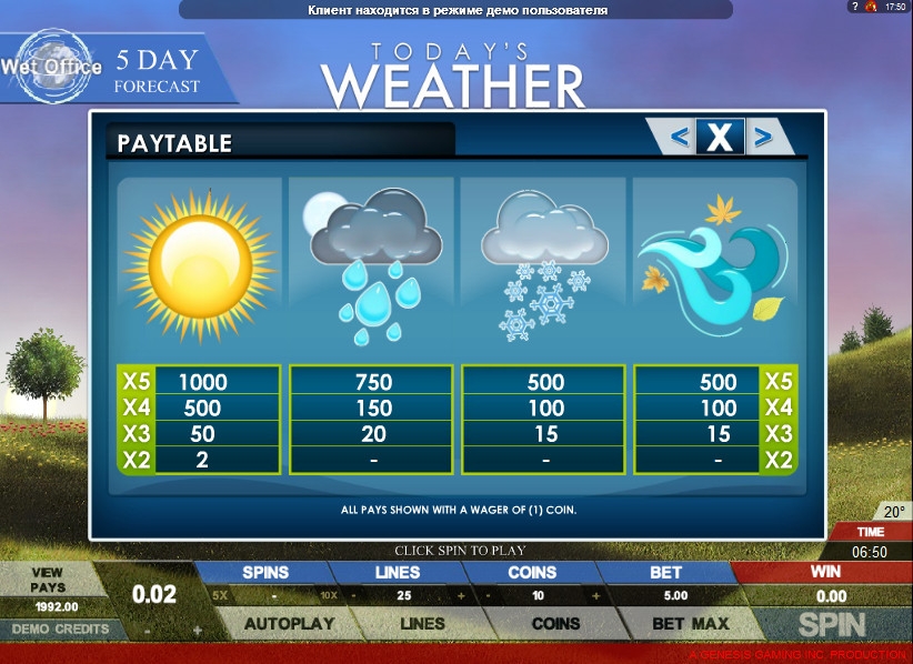 Вы можете скачать игровой автомат «Погода на сегодня» или открыть его прямо в браузере.