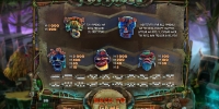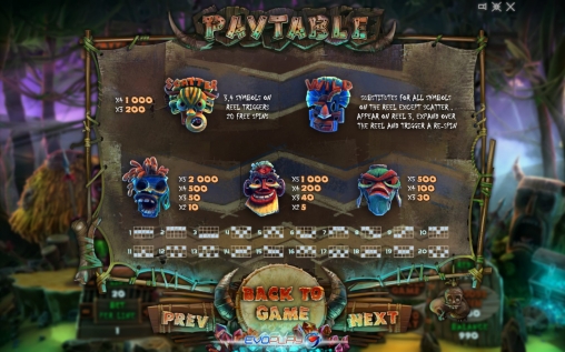 Разноцветные маски и собранные из костей и других предметов номиналы карт являются обычными картинками, которые можно увидеть на барабанах видео-слота. Особыми возможностями обладают Wild, Bonus и Scatter, которые можно узнать по надписям.