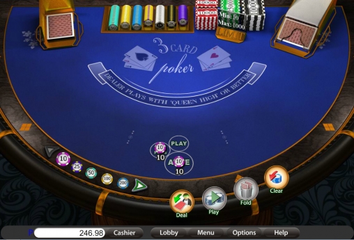 Ход игрыИгровой процесс достаточно прост. Пользователь делает ставку Ante, после чего получает три открытых карты. Себе дилер также сдает три карты, но они закрыты.