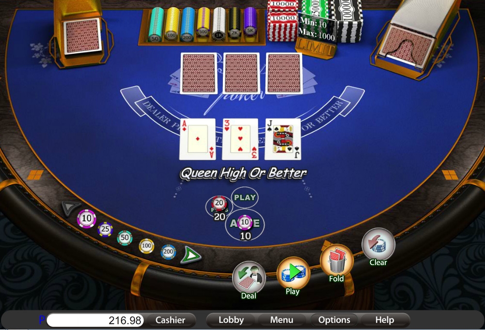 Накопительного джекпота в этом трехкарточном покере нет.