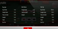 Трехкарточный покер очень популярен среди любителей азартных игр. Прогрессивного джек-пота в игре нет, а вот бонусные выплаты начисляются. Если в ваших картах есть комбинация от стрита, то при Стрите получите 1:1, при Трисе – 4:1, а при Стрит флеше – 5:1.