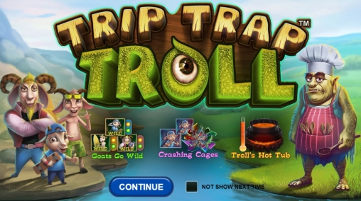 Открыв игровой аппарат Trip Trap Troll, вы увидите на экране козью семью с брутальным отцом семейства, малышом и подростками, обожающими скейтборды и серфинг. Также на барабанах появляются карточные номиналы, вырезанные из дерева и увитые зелеными лианами.