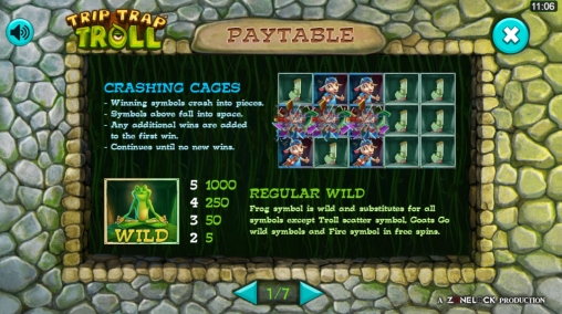 Видео-слот Trip Trap Troll состоит из пяти барабанов, хотя визуально они оформлены не в виде барабанов, а в стиле падающих символов.