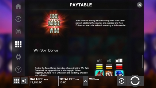 - One More Win! – По завершению фри-спинов бесплатные вращения продолжаются, пока не будет начислен выигрыш.