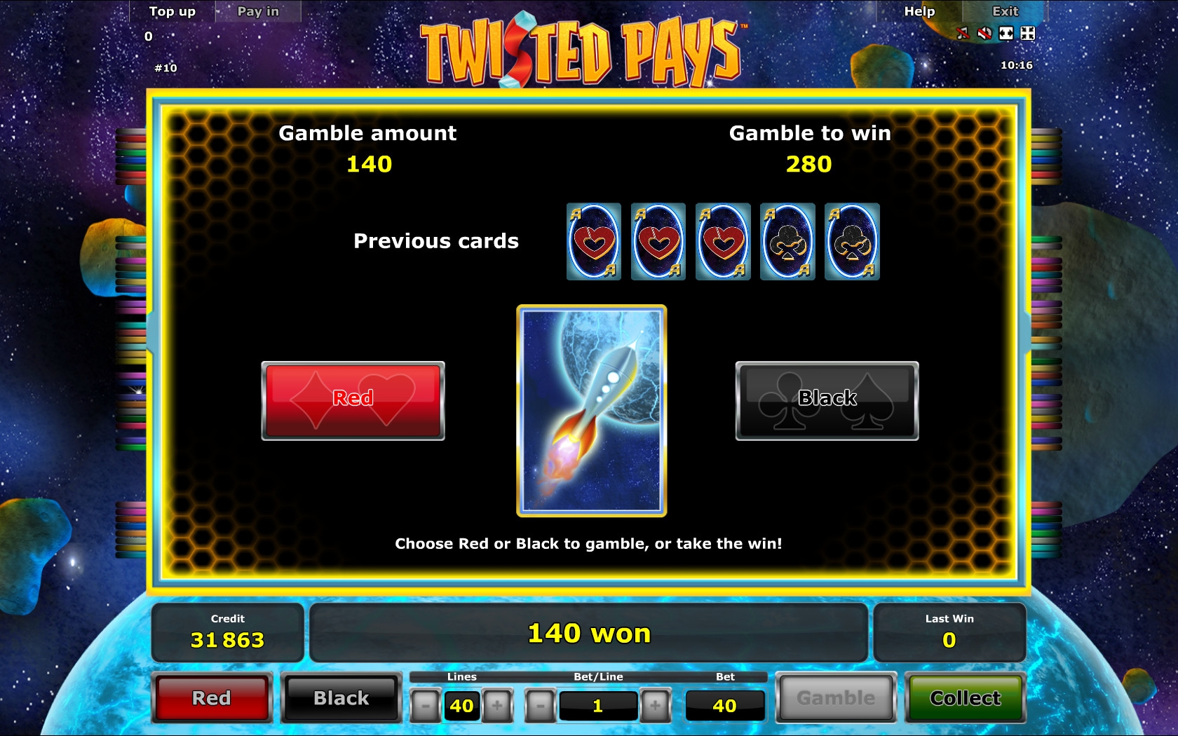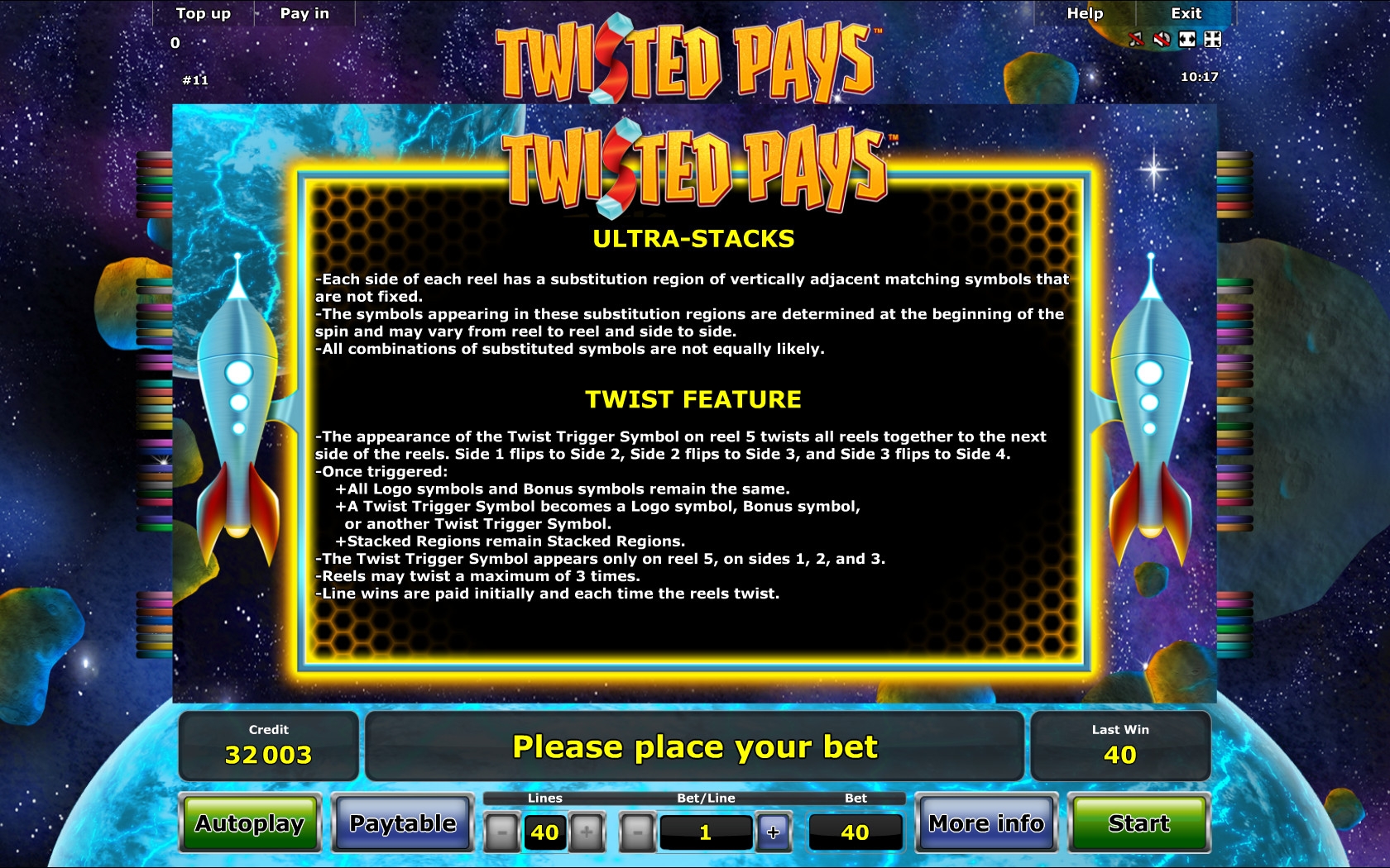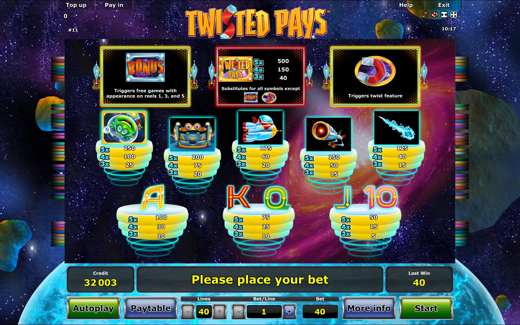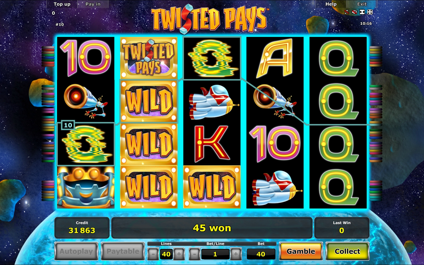Модель Twisted Pays является одной из них. Разработчики из Novomatic поселили на барабанах этой красочной и веселой новинки забавных пришельцев, в компании которых вам ни минуты не придется скучать. Все особенности игры рассматриваются в обзоре от Casinoz.