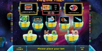 На барабанах автомата можно увидеть смешных инопланетян, их корабли, роботов и оружие. Также здесь появляются номиналы карт от десятки до туза.