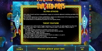 Рассмотрим, как действует Twist. По экрану пролетает космический корабль. Он переворачивает изображения на колонках, смещая их на одну позицию. При этом стекированные картинки такими и остаются. Также не меняются логотипы и бонусные символы. Подряд данная функция может запускаться до трех раз. Если в результате подобных изменений образуются комбинации, они оплачиваются по общим правилам.