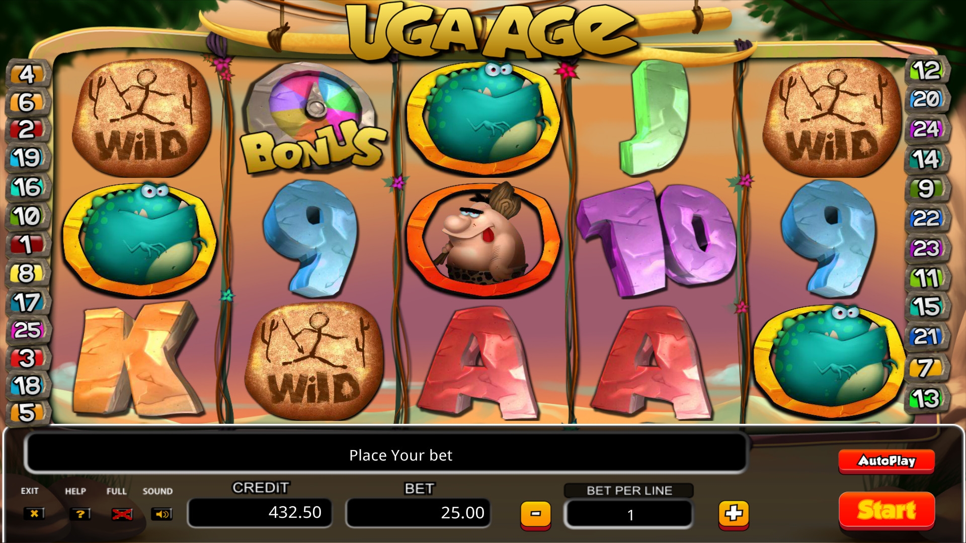 Не желаете совершить небольшое путешествие в каменный век, чтобы познакомиться с обитателями первобытной эпохи? Для этого нужно лишь открыть игровой автомат Uga Age от PlayPearls, который познакомит вас с местным жителем по имени Уга. Это веселый и никогда не унывающий парень. Он поможет вам получать выплаты по комбинациям и бороться за право участия в бонусном раунде и фри-спинах.