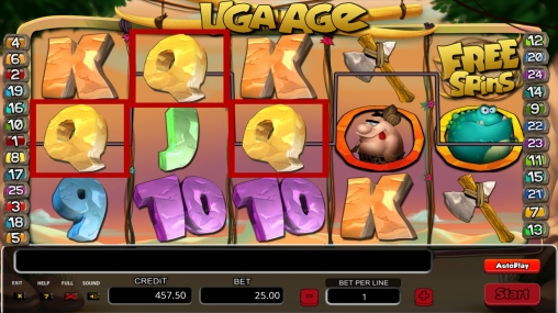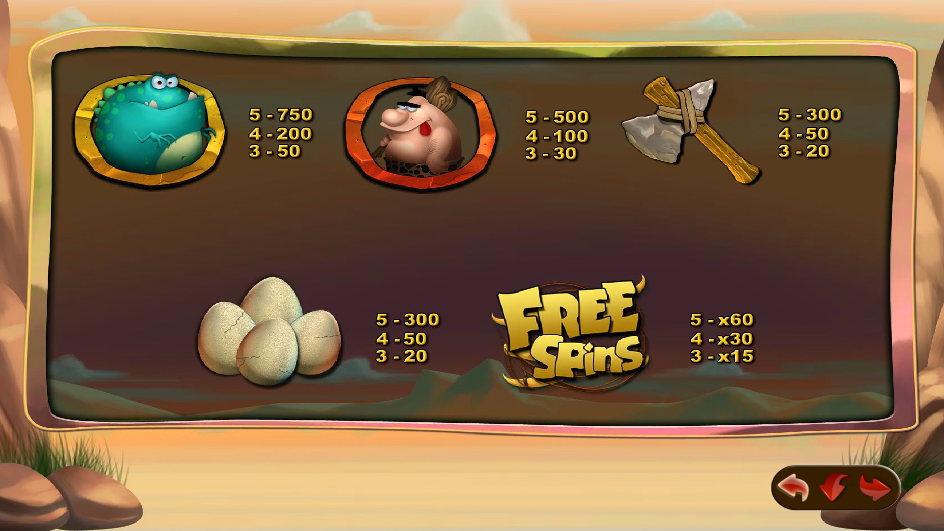 Открыв видео-слот Uga Age, вы увидите на экране главного героя, странное зеленое существо, каменный топор, яйца динозавра и разноцветные номиналы карт от девятки до туза.