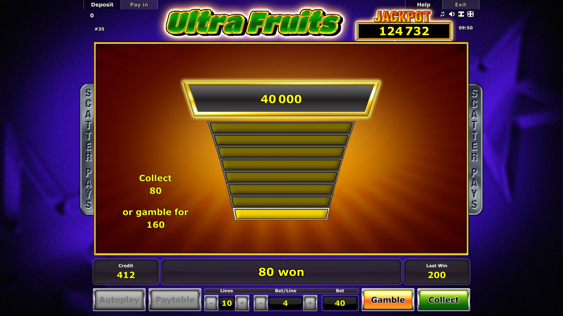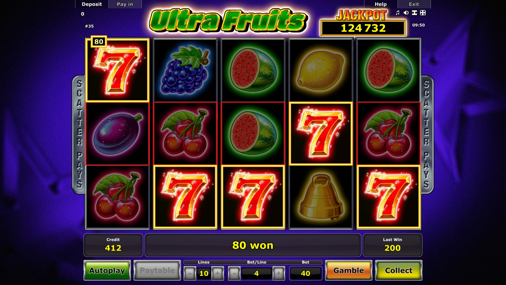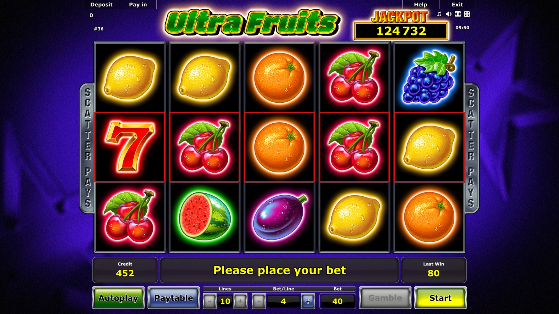 Добрый день как то в друг мы с другом зашли в игровые автоматы и сели в двоём за игру Ultra Fruits очень крутая оказалась игра очень интересная и яркая.Хорошо тогда провели время да и выграли немного.