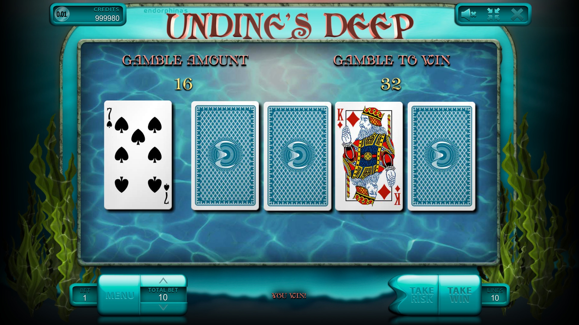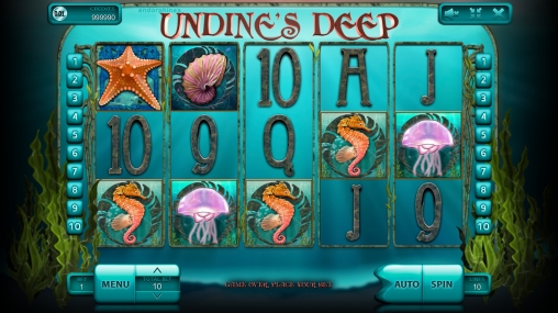 Ундинские бездны глубоки, да еще и зеленого цвета. Всякие морские глубоководные твари соседствуют с цифрами и буквами, обозначающими карты из стандартной колоды, и их гораздо больше всех медуз. Бонусной игры нет, а жаль.