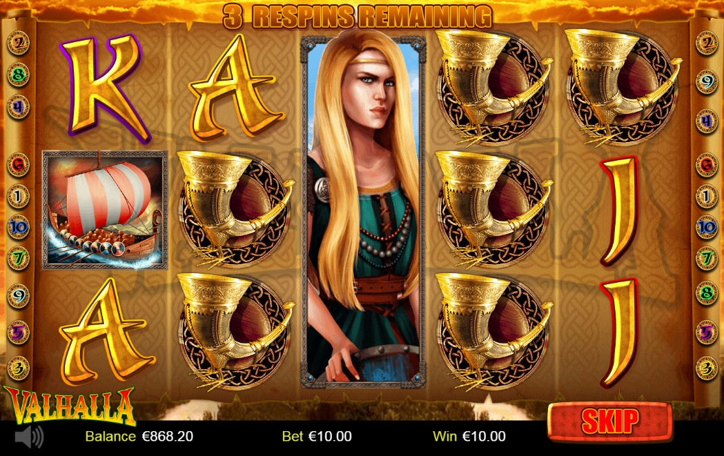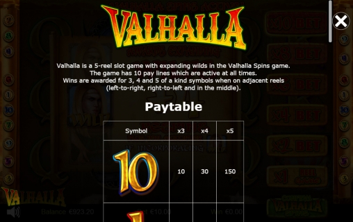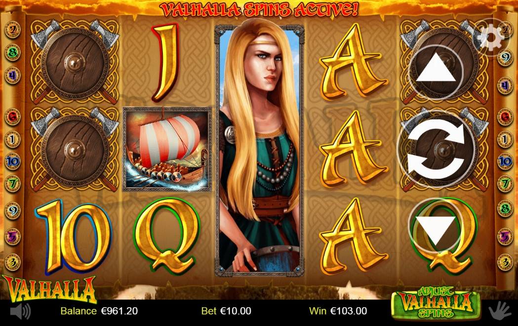 В видео-слоте Valhalla пять барабанов и десять постоянно задействованных линий.
