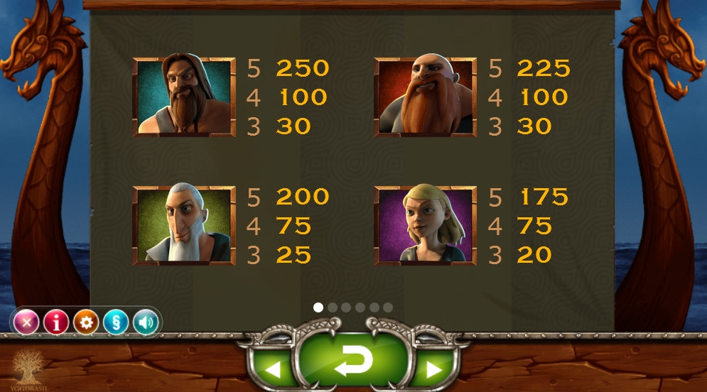 В игре используются восемь обычных картинок: четыре викинга, включая одну девочку, и четыре монеты: железная, бронзовая, серебряная и золотая. Они представлены на барабанах полосами, поэтому любой из данных элементов может занимать целиком не только колонку, но даже весь экран.