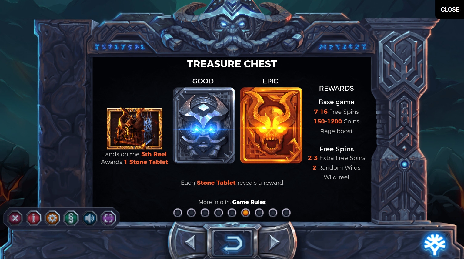- Treasure Chest – Каждая скрижаль может принести денежную выплату, фри-спины, множители или увеличение уровня ярости.