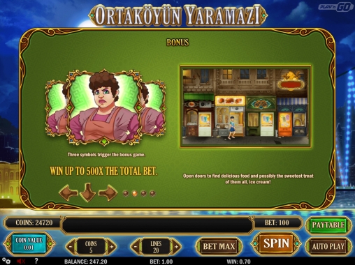 Веселый игровой аппарат Ortaköyün Yaramazi появился в списке моделей производства Play’n Go. В англоязычной версии он значится как Village Kid («Сельский парень»). Но, если верить Google-переводчику, с турецкого на русский название переводится как «Непослушный напарник», что вполне соответствует тематике новинки. Ее героями стала женщина, занимающаяся продажей уличной еды, и ее озорной сын, постоянно огорчающий мать отнюдь не примерным поведением. Обозреватели Casinoz расскажут вам, на что следует обратить внимание в игре.