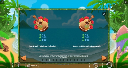 Видео-слот «Вайкики» - это игра с пятью барабанами, двадцатью пятью фиксированными линиями и тремя рядами символов на главном экране.