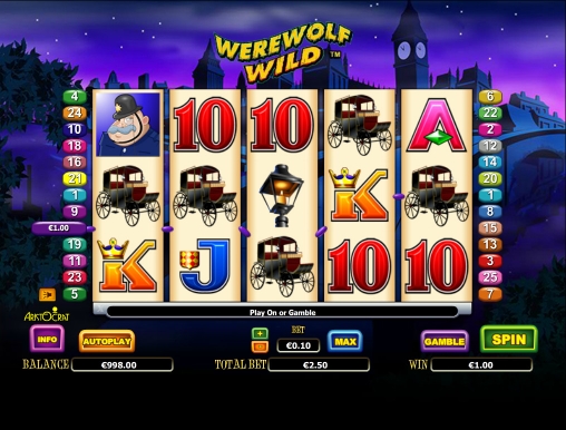 «Дикий оборотень» - пятибарабанная модель с двадцатью пятью линиями, постоянно активными по умолчанию. Ставка на каждую из них варьируется в диапазоне от одного цента до двух евро. На раунд принимается до пятидесяти евро.