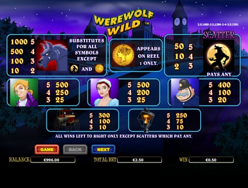 Знаете, как люди становятся оборотнями? Если вам повезло не родиться от одной этих плотоядных и кровожадных тварей, опасность превратиться в вервольфа все равно существует. На вас могут наложить проклятие, вас может укусить человек-волк, или же вы можете напиться воды из его следа (по крайней мере, в этом нас убеждают старинные легенды). К счастью, игра на видео-слоте, посвященном оборотням, подобной опасности вас не подвергает. Поэтому можете смело запускать бесплатный игровой автомат Werewolf Wild от компании Aristocrat, которому посвящен наш обзор.
