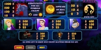 В таблице выплат указаны не только коэффициенты расчета выигрышей по комбинациям. Там доступна также схема расположения активных линий, общие правила игры, а также подробное описание бонусных функций и риск-игры по шансам.