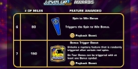 Рассмотрение призовых опций видео-слота начнем с обсуждения системы Level Up Plus. В левом нижнем углу экрана есть табло уровня топлива в баке. При каждом появлении на экране бонусного символа стрелочка поднимается на одно деление. Когда она доходит до конца, игрок перемещается на следующий уровень, где ему открываются дополнительные функции:
