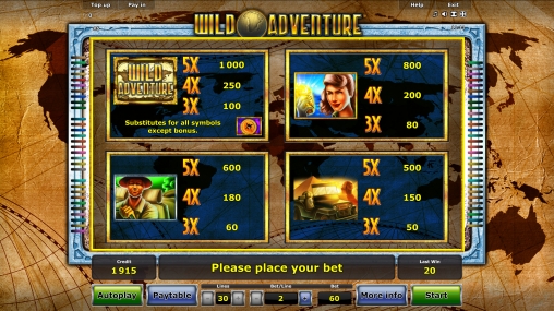 В портфолио игр известной компании Novomatic появилась модель, ориентированная на самых азартных и жаждущих приключений пользователей. Новинка под названием Wild Adventure приглашает их присоединиться к отважным путешественникам, которым не сидится на мягком диване в уютной квартире. Они не мыслят жизни без далеких путешествий, и заставить отказаться от цели их не могут никакие трудности. В общем, добро пожаловать в компанию бесстрашных исследователей дикой природы.