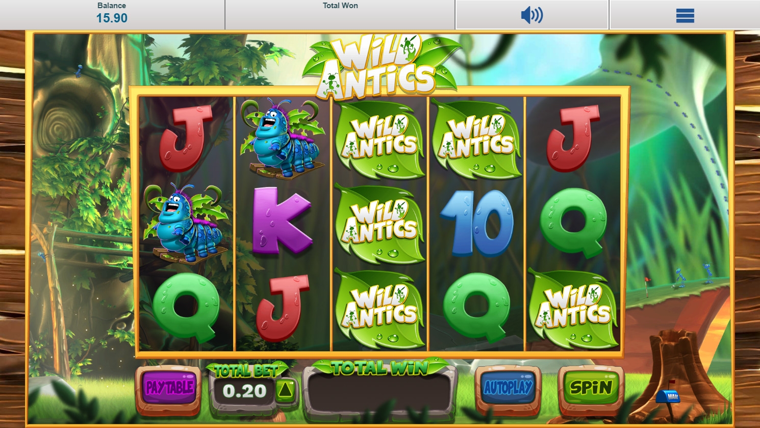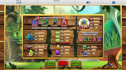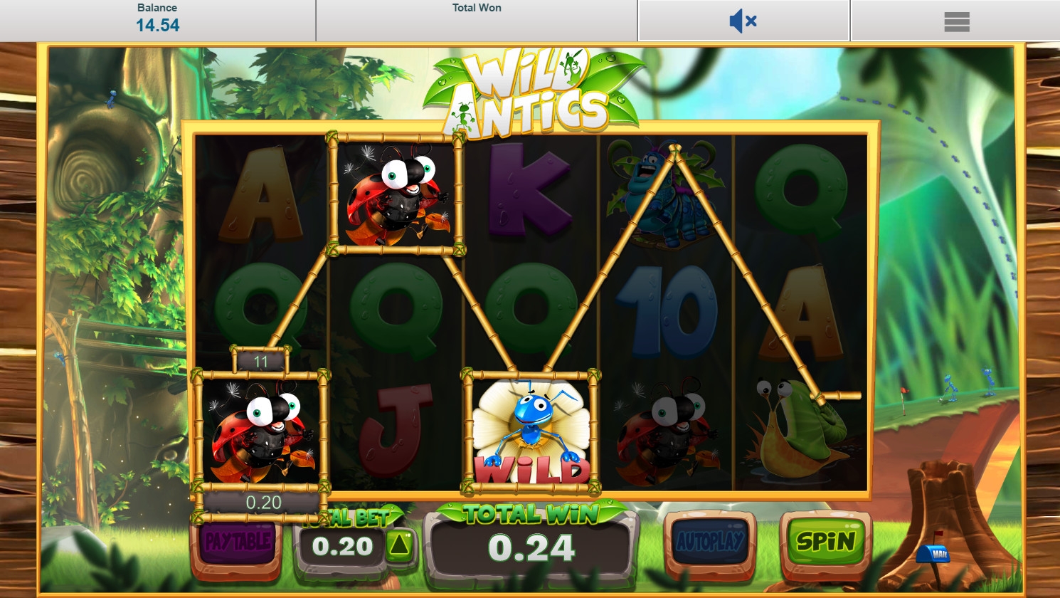 Чудаковатая гусеница, веселая божья коровка, косоглазая улитка – этих и других насекомых вы увидите на экране слота. Кроме того, на барабанах появляются стекированные логотипы Wild Antics и номиналы игральных карт.