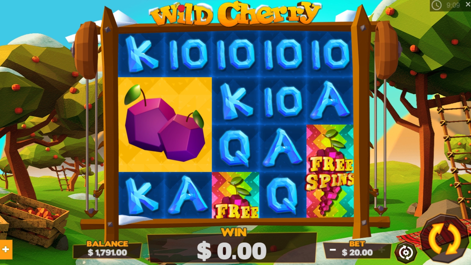 В Wild Cherry пять барабанов, сорок фиксированных линий и двадцать ячеек для символов на центральном экране.