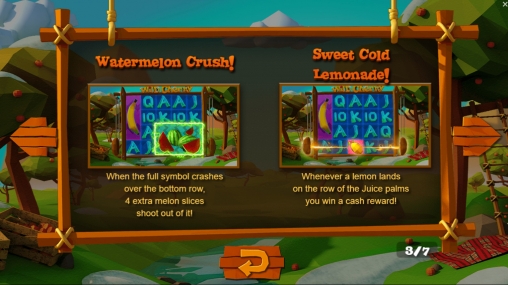 - Watermelon (арбуз) начинает бонус Watermelon Crush. Этот символ занимает шесть (3х2) позиций на барабанах.