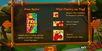 - Wild Cherry on Top – Джокер выпадает поверх символов после остановки барабанов. Он может расширяться, занимая две (1х2) или четыре (2х2) ячейки. Двойной Wild удваивает выплаты по комбинациям, а символ размером 2х2 увеличивает суммы в четыре раза. Речь идет о выигрышах по цепочкам, составленным с участием джокера.