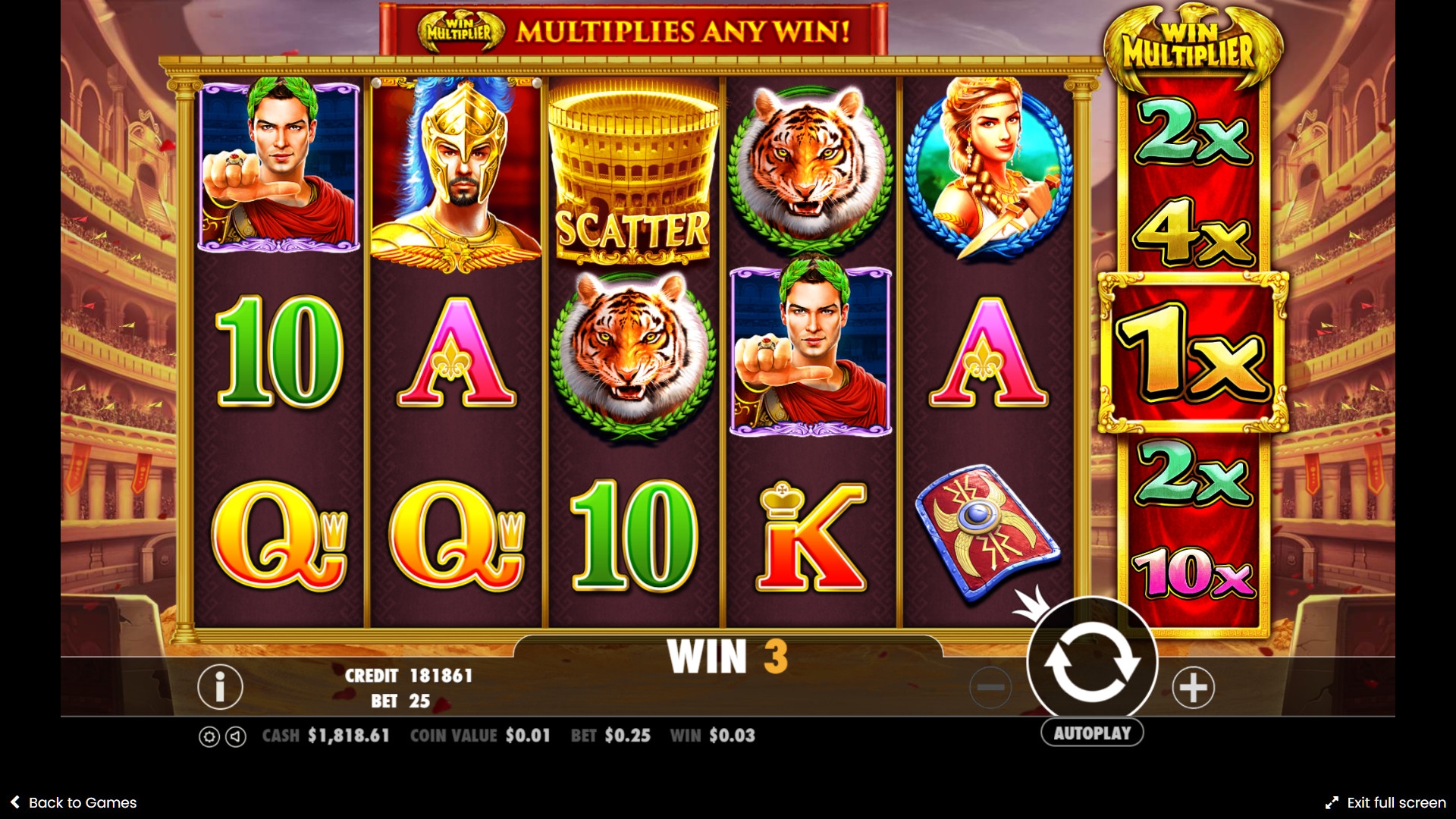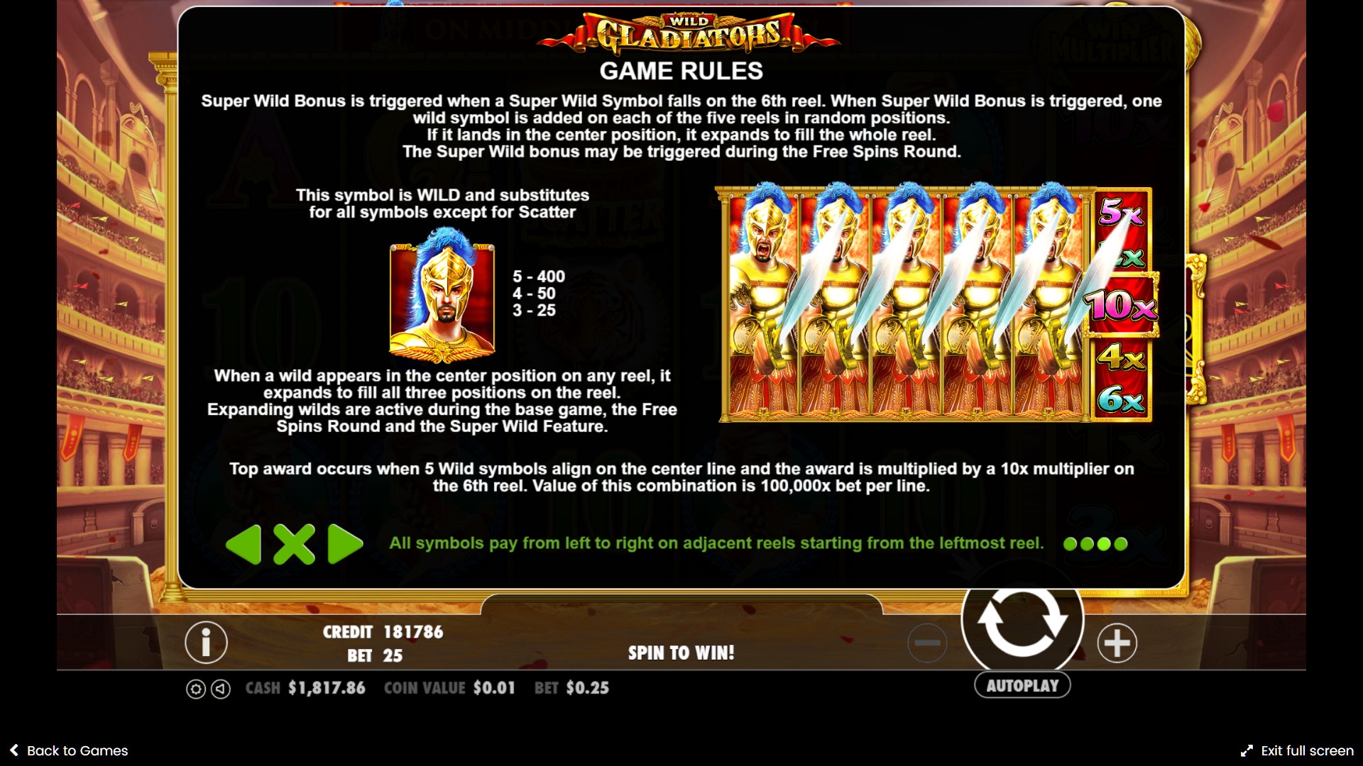 Для бесплатного тестирования и реальной игры на деньги видео-слот Wild Gladiators предлагается в интернет-казино с софтом Pragmatic Play.