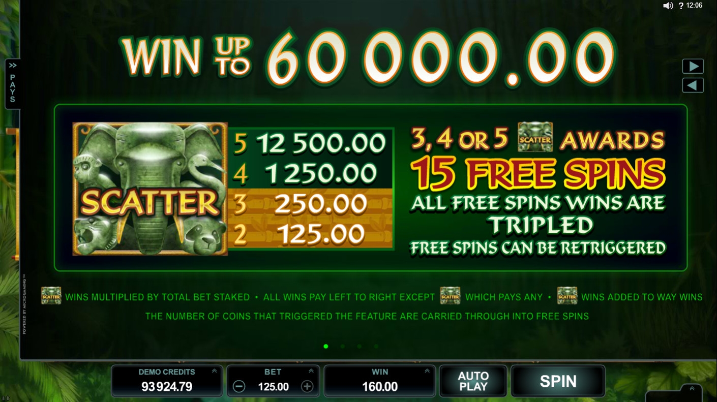Специальные возможности имеют символы Wild (логотип автомата) и Scatter (слон). О них подробнее.