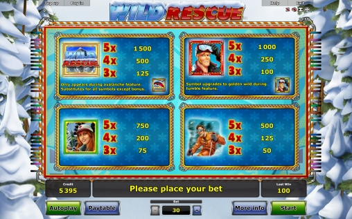 О некоторых символах стоит поговорить отдельно, потому что они выполняют особые функции. Это Bonus (вертолет спасателей), Wild (логотип игры), Golden Wild (спасатель) и дополнительный Wild (лыжник-экстремал).
