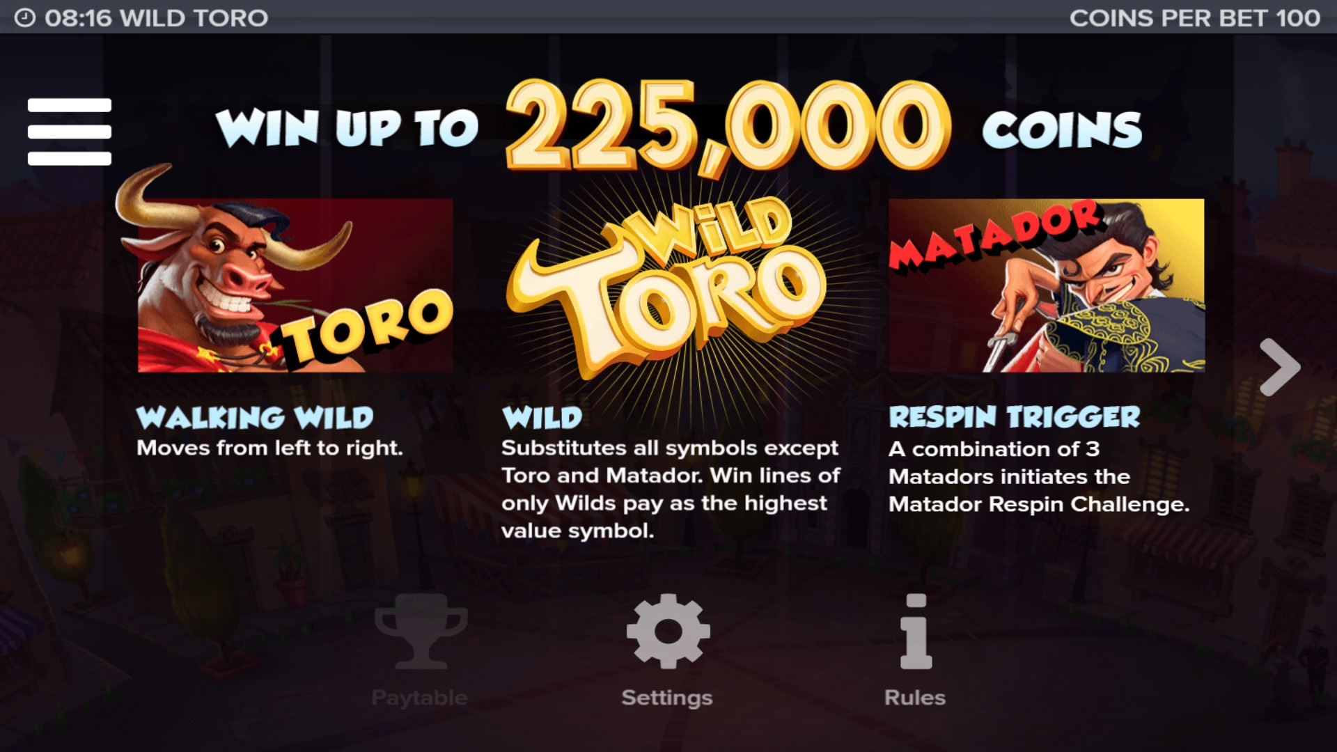 В Wild Toro предлагаются действительно интересные бонусы. Бык, атакующий матадора и оставляющий за собой след из Wild, повторные респины с возможностью продления – эти функции делают геймплей по-настоящему увлекательным. Добавим, что модель обладает замечательной графикой, классными анимационными заставками, простым и понятным интерфейсом и другими достоинствами. Отдельно следует вспомнить автоматические стратегии, встроенные в автомат.